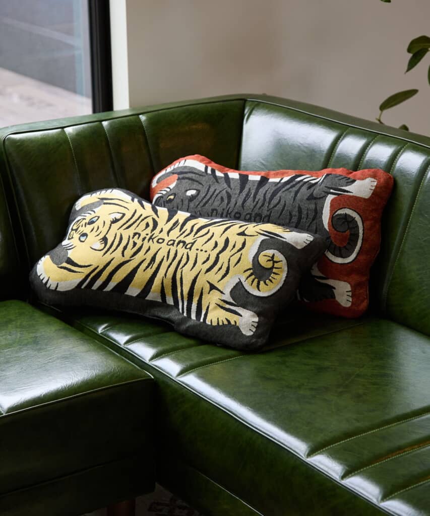 ニコアンドの「トラクッション」(税込み:2970円)は、トラの敷物をイメージしたダイカットクッション。個性的でインパクトのあるデザインで、ソファーやベッドに置いておくだけでインテリアの主役になってくれます。雰囲気の異なるイエローとグレーの2色展開で、どちらもそろえたくなります。