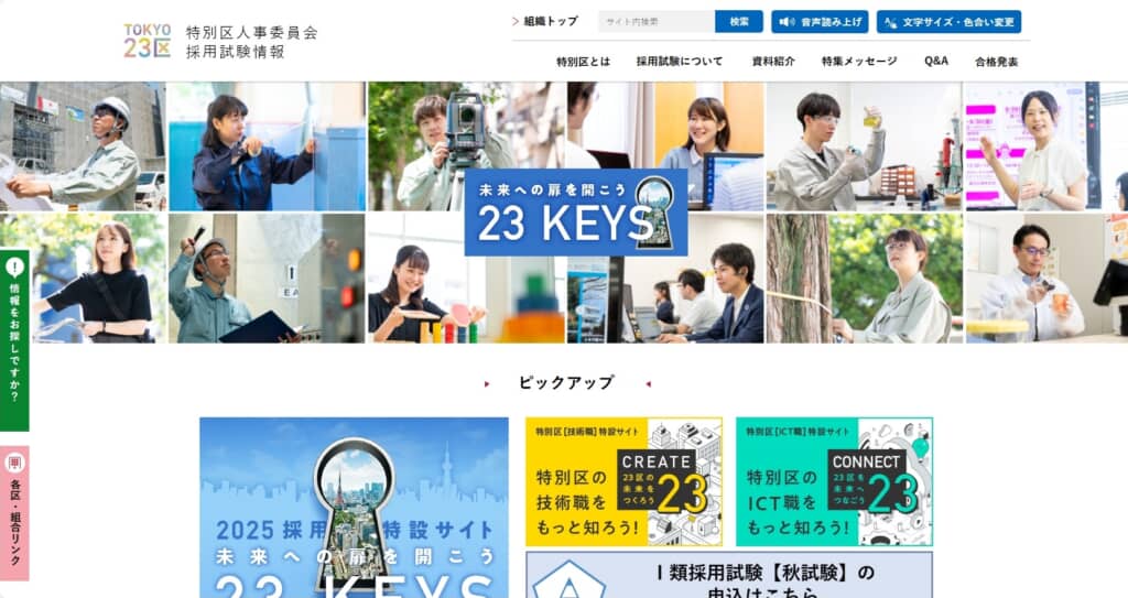 画像:特別区人事委員会トップページ