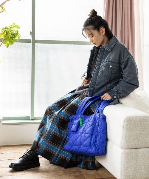 中綿入りのふんわりとしたハンドルは、肩にかけたときの当たりも優しく、長時間の使用でも快適。トートバッグとして手に持つのはもちろん、ショルダーバッグとしても使える2WAY仕様なので、スタイルやシーンに合わせて持ち方を変えられます。バッグの内装にはポップな配色が施されており、荷物が探しやすいのもうれしいポイントです。