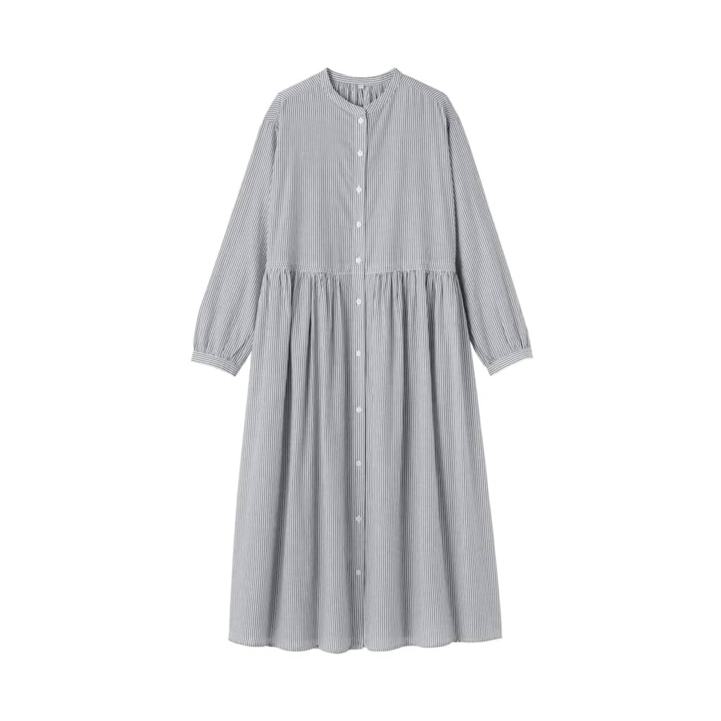 第15位:婦人 洗いざらし ブロードスタンドカラー長袖ワンピース