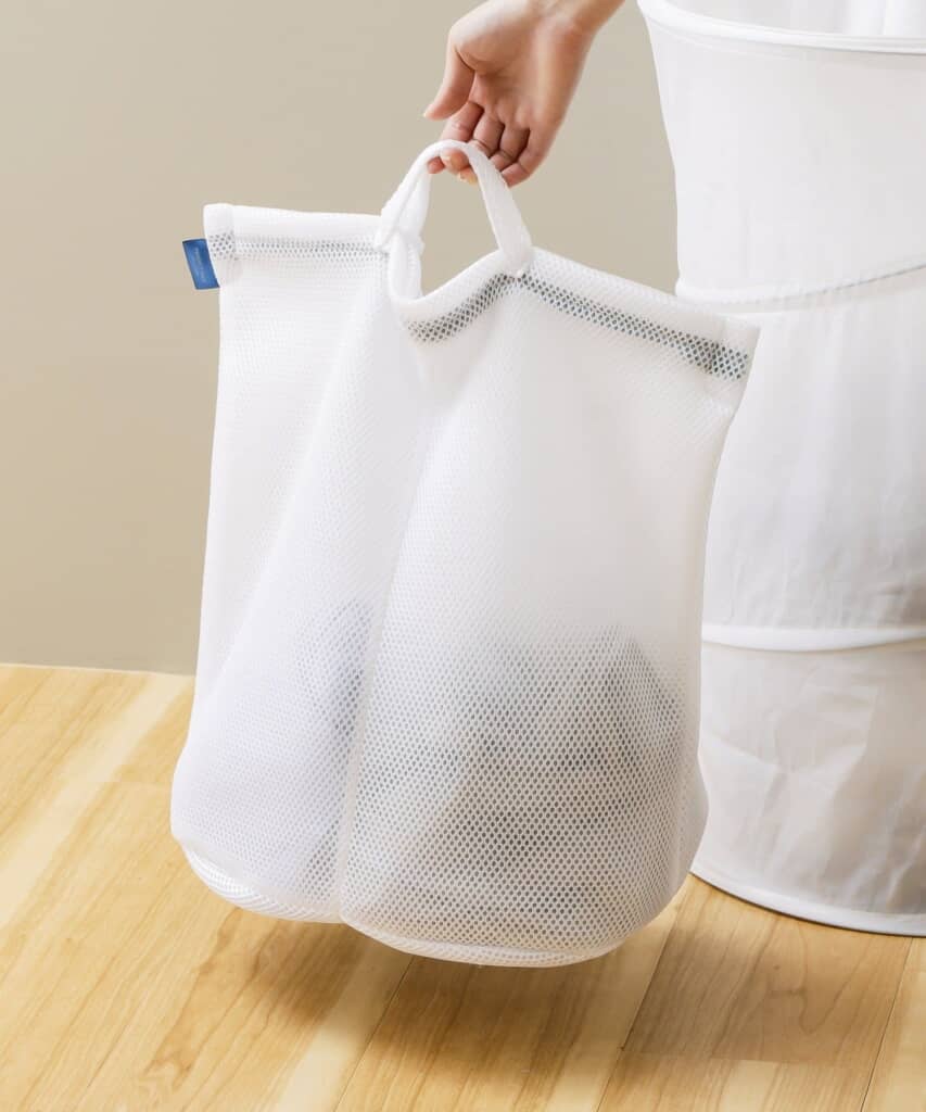 購入者からは、「洗濯物を小分けできるし、糸くずがつかないし、ファスナーもしっかりしているのでもう一つ購入しました」「下着などを仕分けして洗濯機にすぐポイできます」「効率的に洗濯物を干せるようになった」「ボロボロになっては買い替えて3個目」「ちょっと厚めの生地で中の物が傷まなそうなのも気に入っています」「保育園の仕分けバッグとして使ってる」といった声が寄せられています。