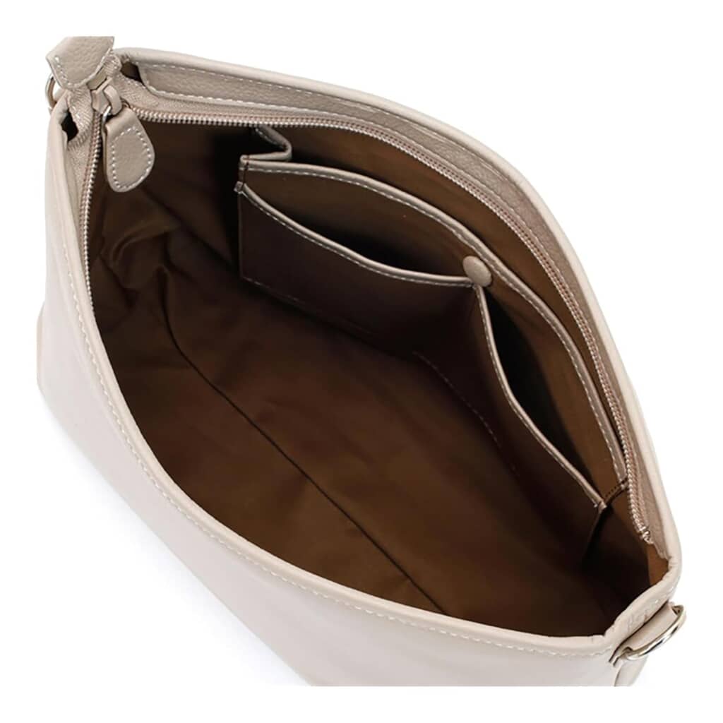 アフタヌーンティーの雑貨ブランド「アフタヌーンティーリビング」と、バッグメーカー「エース」のコラボレーションによって誕生したショルダーバッグは、毎日のちょっとしたお出かけやお買い物、自転車移動のときにもぴったりです。シンプルなデザインでどんなコーディネートにもすっとなじむのに、機能性もばっちり。前面内部のポケットや本体の小分けポケットなど、コンパクトながらもポケットが充実しており、スマホや鍵、ハンカチなどの小物をすっきりと整理して収納できます。また、マチ幅もしっかりあって、見た目以上の収納力を発揮。長財布や500mlのペットボトルも無理なく収まります。ファスナー部分には高さのあるDカンが付いており、引き手の可動域が広めに設計されているため、開け閉めがスムーズです。
