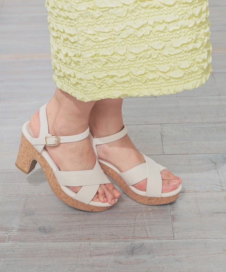 ハニーズの「クロスヒールサンダル」は、ハイヒールでも歩きやすいと評判のアイテム。ヒールの高さは約9cmながら、厚みのあるソールやアンクルストラップ、綿100%のナチュラルな素材などの合わせ技で、とても歩きやすく仕上がっています。8月6日現在では1980円とセール価格になっており、お買い得です。