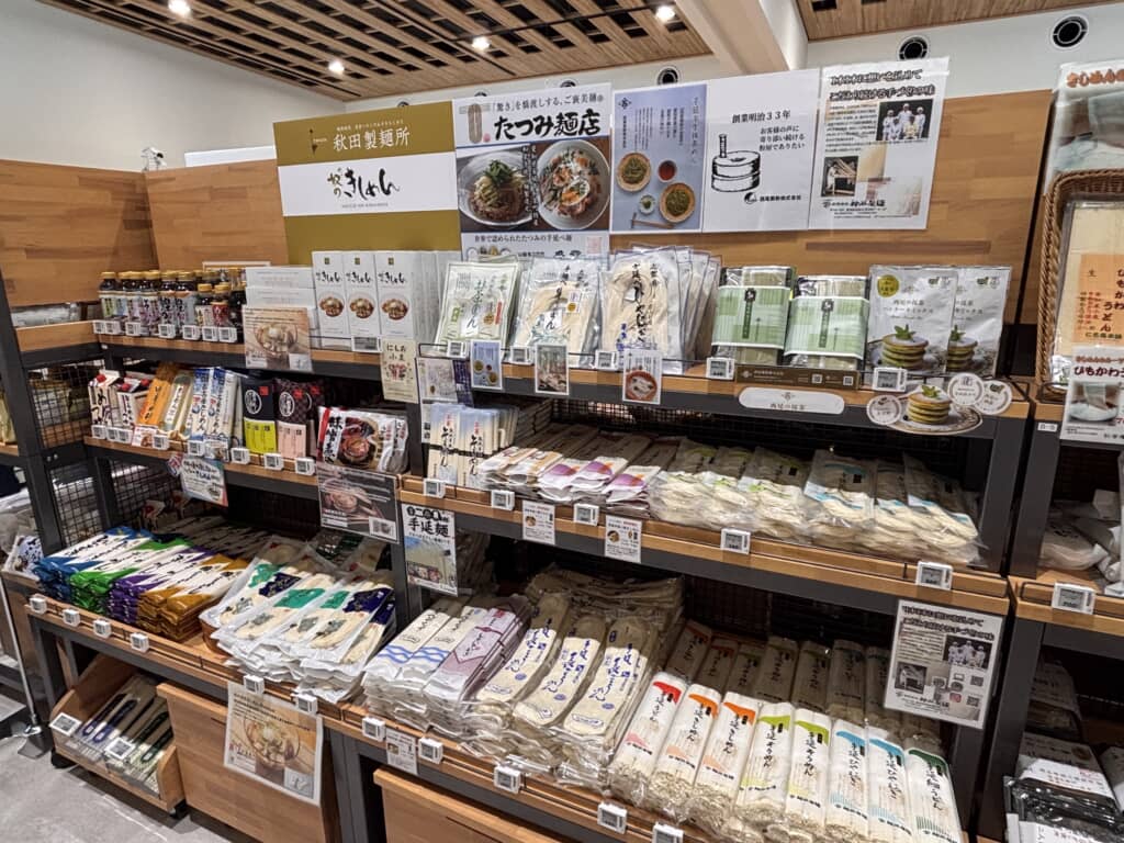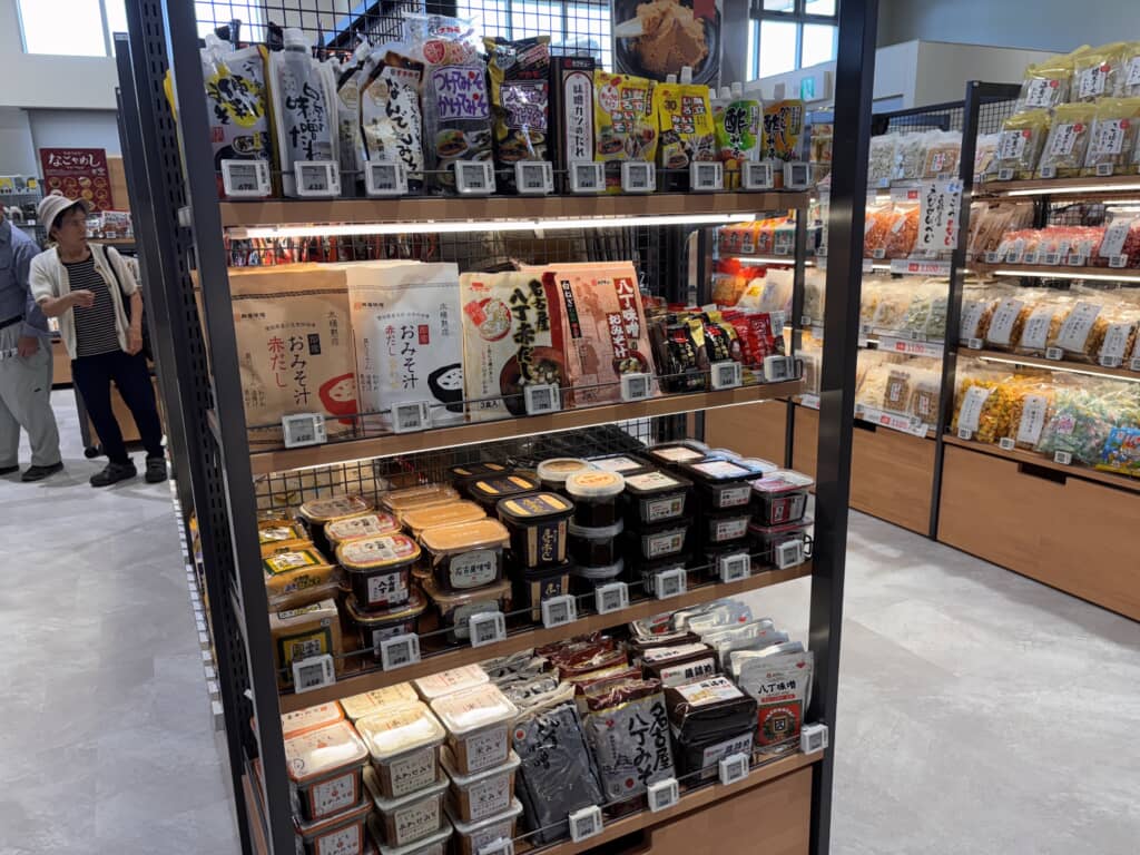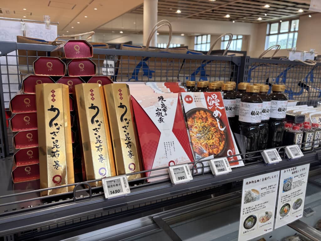 農産直売所には、新鮮な野菜をはじめ地元の特産品がズラッと並んでいます。名古屋のソウルフード「きしめん」や「八丁味噌」といった愛知らしいものから、この道の駅限定の商品が並んでいたり、アナゴ、ウナギ、アユなどズラリと並ぶ海産コーナーなど見どころがたくさんです。