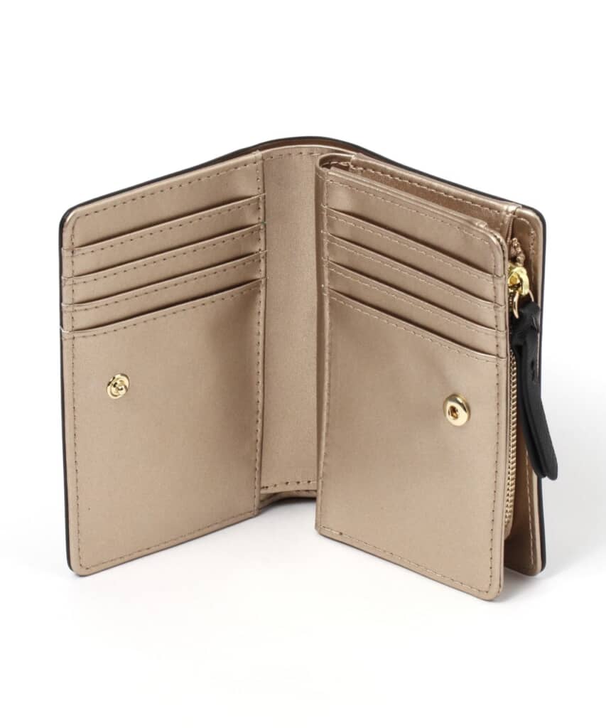 ニコアンドの「オリジナル二つ折り8ポケット財布」は、コンパクトながら収納力のあるミディアムサイズの二つ折り財布。嵩張りにくい設計で、バッグからスムーズに出し入れできるのも特徴です。8枚以上のカードを収納できるカードポケットや、中身が見やすいマチ付きコインポケットを備え、機能性も充実。手に取るたびに気分が上がる配色デザインで、選ぶ楽しさも魅力です。カラーはブラック・レッド・アイボリー・キャメル・ゴールド・グリーン・パープルの7種類。2025年8月8日時点で、公式オンラインサイトではセール価格の2904円で販売されています。