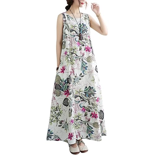 10位:Ecrisdoo リネンワンピース リゾート 花柄 着痩せ チュニック 大きいサイズ 薄手 涼しい マキシ ロングワンピース レディース 綿麻 春夏 体型カバー ゆったり オシャレ 部屋着