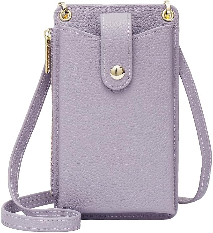 素材はPUレザーで、カジュアルすぎず上品な高級感を演出。カラーバリエーションも豊富で、ピンク、ブラック、ブルー、グリーンなど多彩な色がそろいます。収納ポケットは、メインポケットに加え、お札・小銭用ポケット1、カード入れ5の合計多数のスペースを備えており、財布代わりとしても使えます。スナップボタン付きのフタでスマホの落下を防ぎ、ショルダーベルトは取り外し可能なため、バッグに入れて使用することも可能です。