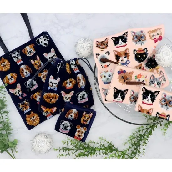 「ラブラリープリティーキャッツ ハンカチ」は、個性豊かな猫たちが主役。メガネ、リボン、スカーフ、花などのモチーフでおしゃれを楽しむ姿を、鮮やかな発色と立体感で描き出しています。素材は綿100%。フェイラーの代名詞であるシュニール織が生む、厚みのあるやわらかさと優れた吸水性で、日常づかいでも満足感の高い仕上がりです。