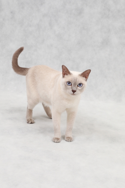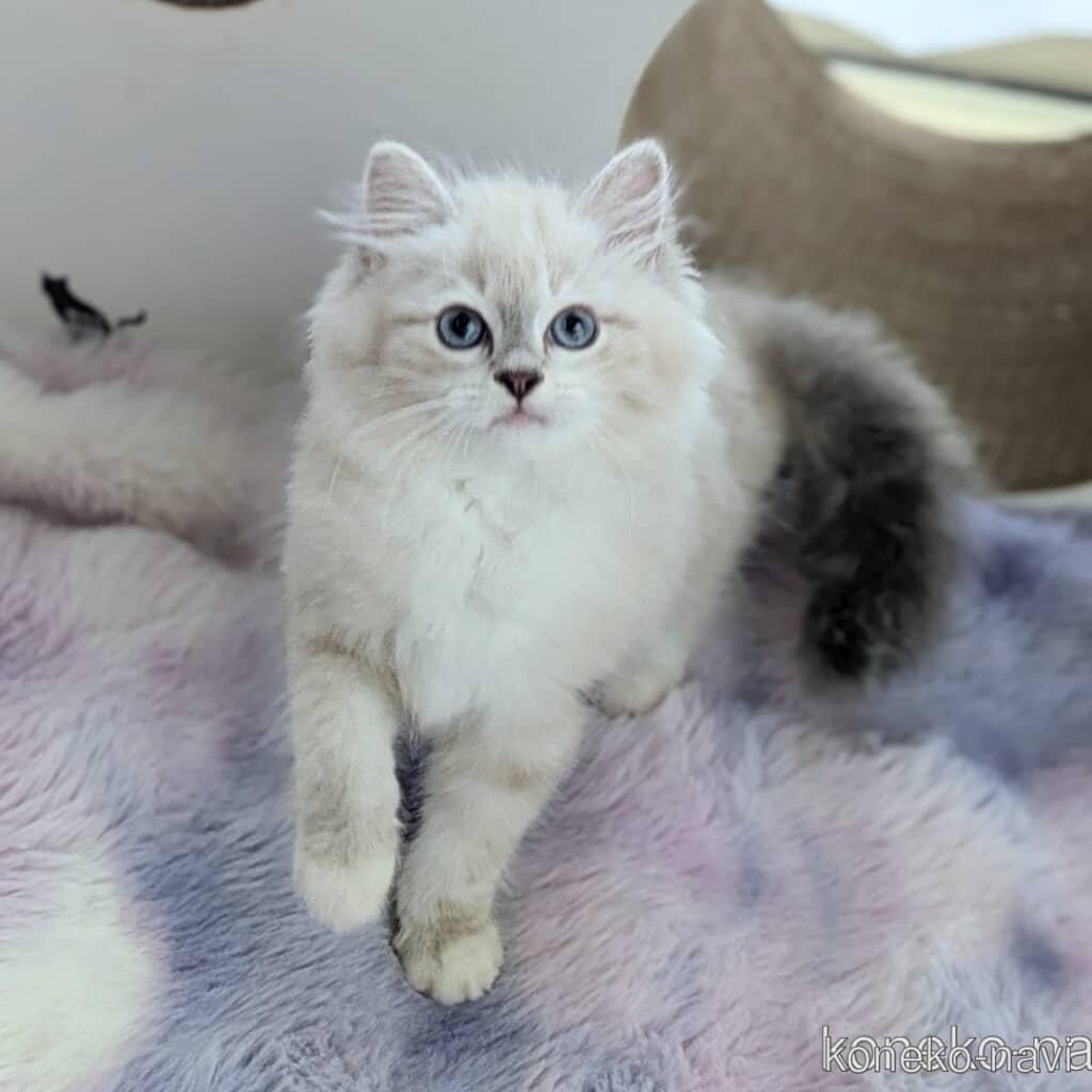 まんまるの顔に大きな瞳、ずんぐりとした体形がチャームポイント。性格はおだやかで人懐っこく、初めて猫を迎える方にもおすすめです。抱っこを好む子も多く、犬のように甘えん坊な一面も魅力です。