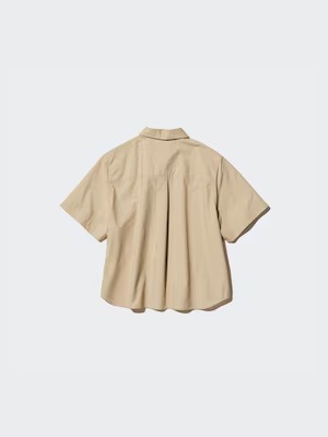 ユニクロの「コットンショートシャツ/半袖」は、ハリ感のあるコットン100%素材を使用したシャツ。着丈が少し短めなリラックスシルエットなので、パンツやスカートなど、さまざまなボトムスに合わせやすいのがうれしいポイントです。カラーは00 WHITE・32 BEIGE・69 NAVYの3種類を展開。2025年8月19日時点では、値下げ価格の1990円で販売されています。なお、00 WHITE・32 BEIGEはオンラインサイトで在庫切れとなっているので、近くの店舗をチェックしてみるのがよさそうです。