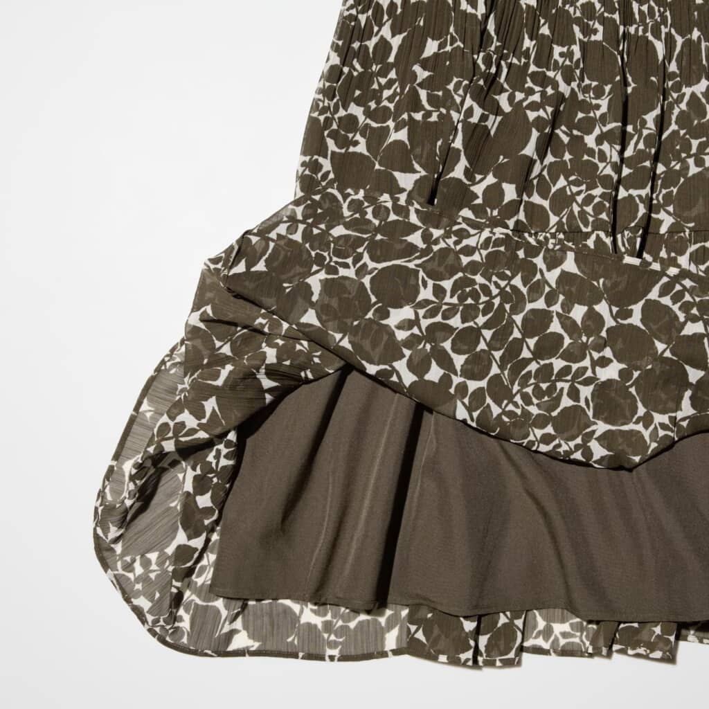 ユニクロの「シフォンティアードスカート」(税込3990円)は、軽やかなシフォンに細かなプリーツを施し、裾の切り替えでほどよいボリュームを生むティアード設計の柄スカート。総ゴムのウエストで着脱しやすく、全体に裏地が付いているので安心。コーデに取り入れやすい2トーンのボタニカルで、無地のTシャツやシャツと合わせるだけで印象が変わります。カラーはネイビーとオリーブの2色です。