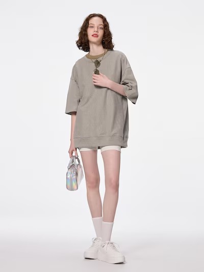GUの「スウェT(5分袖)」は、スウェットのディテールが取り入れられたアイテム。本体は綿60%×リサイクルポリエステル40%のダブルフェイス生地で、肉厚ながらゴワつかず着心地が良いと評判です。トレンドのビッグシルエットでユニセックスに対応しています。XS〜3XLまでそろっており、豊富なサイズ展開もうれしいポイントです。