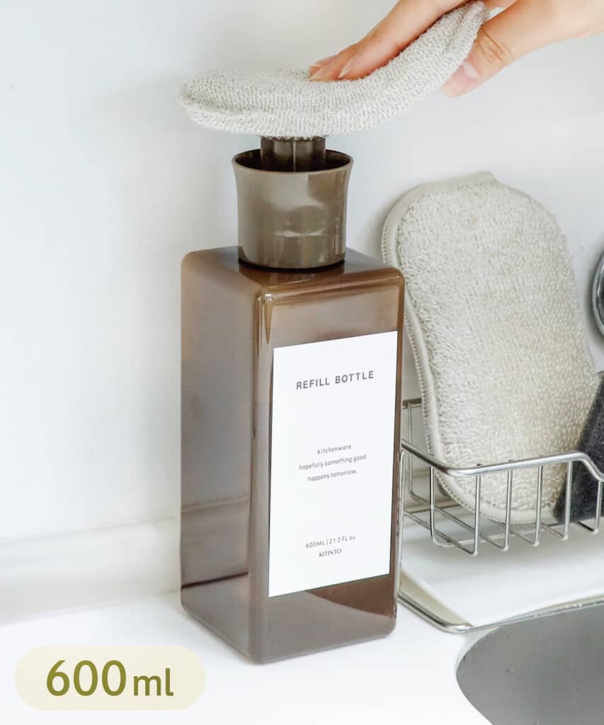 《片手でワンプッシュ!》食器洗剤ボトル角型:600ml/KITINTO