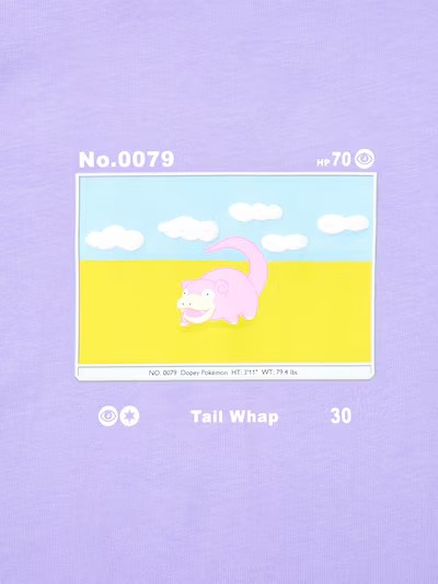 ユニクロ「ポケモン UT」は、ポケモンカードゲームのイラストを大胆に取り入れたグラフィックTシャツ。そのなかでもこの一着は、図鑑番号79番の「ヤドン」をあしらったものです。ポケットモンスター第1作目から登場するこのポケモンは、その愛らしい「まぬけ」なキャラクターで人気。名物である「うどん」と響きが似ているということで、「香川県」とコラボする機会も多くなっています。