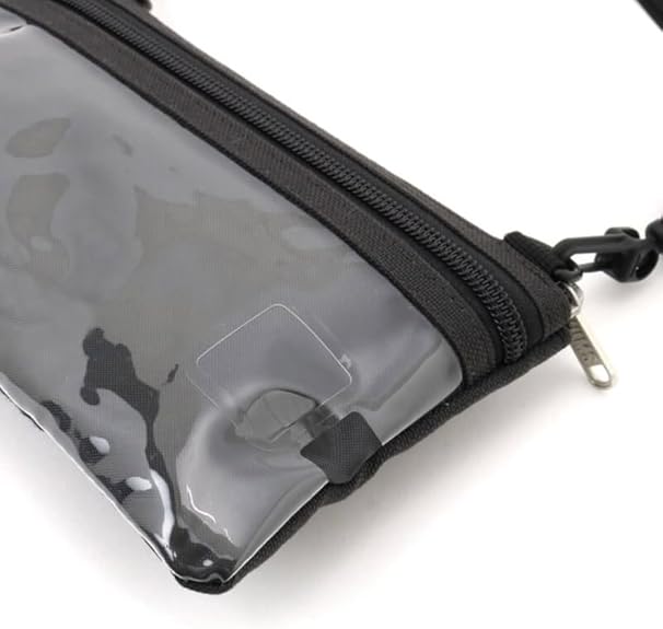 「スマートフォンショルダースウェットナイロン」は、チャムスの定番「スウェット×ナイロン」シリーズのスマホ用ミニショルダーです。表地のスウェットにはAsahi Guard E‑SERIES加工が施され、撥水・撥油・防汚性を確保。背面はクリアビニールのスマホポケットで、入れたまま画面操作に対応します(指紋認証は非対応)。