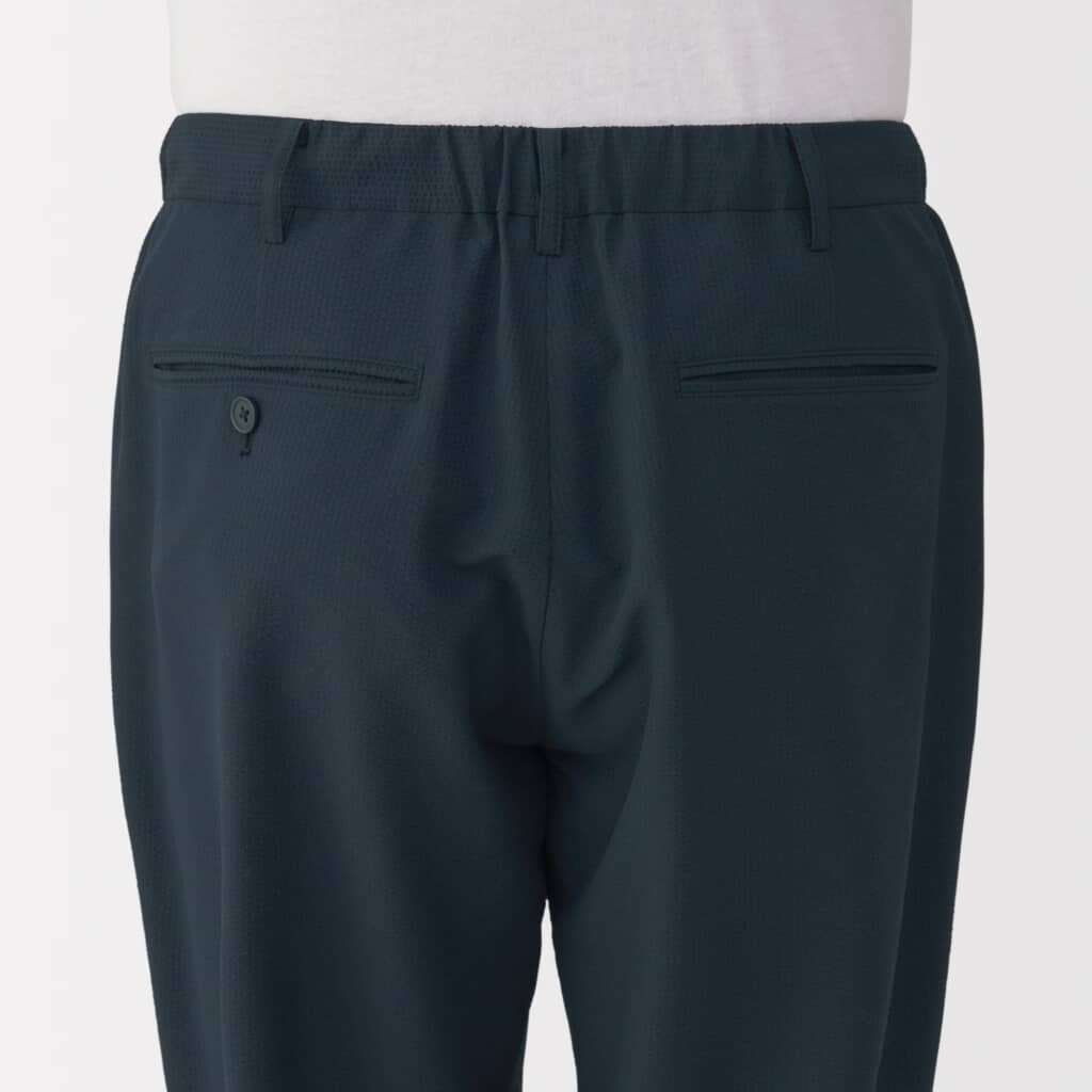 以下からは、「紳士 風を通すストレッチサッカーノータックパンツ」の詳細画像と「無印良品のビジネスウェア(メンズ)」人気ランキングTOP18を紹介します!
