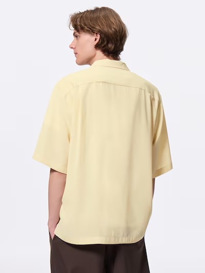 GUから販売されている「オープンカラーシャツ(5分袖)」が、落ち感があり体型も隠してくれるリラックスシルエットで、夏でもさらりと着られると高評価を集めています。