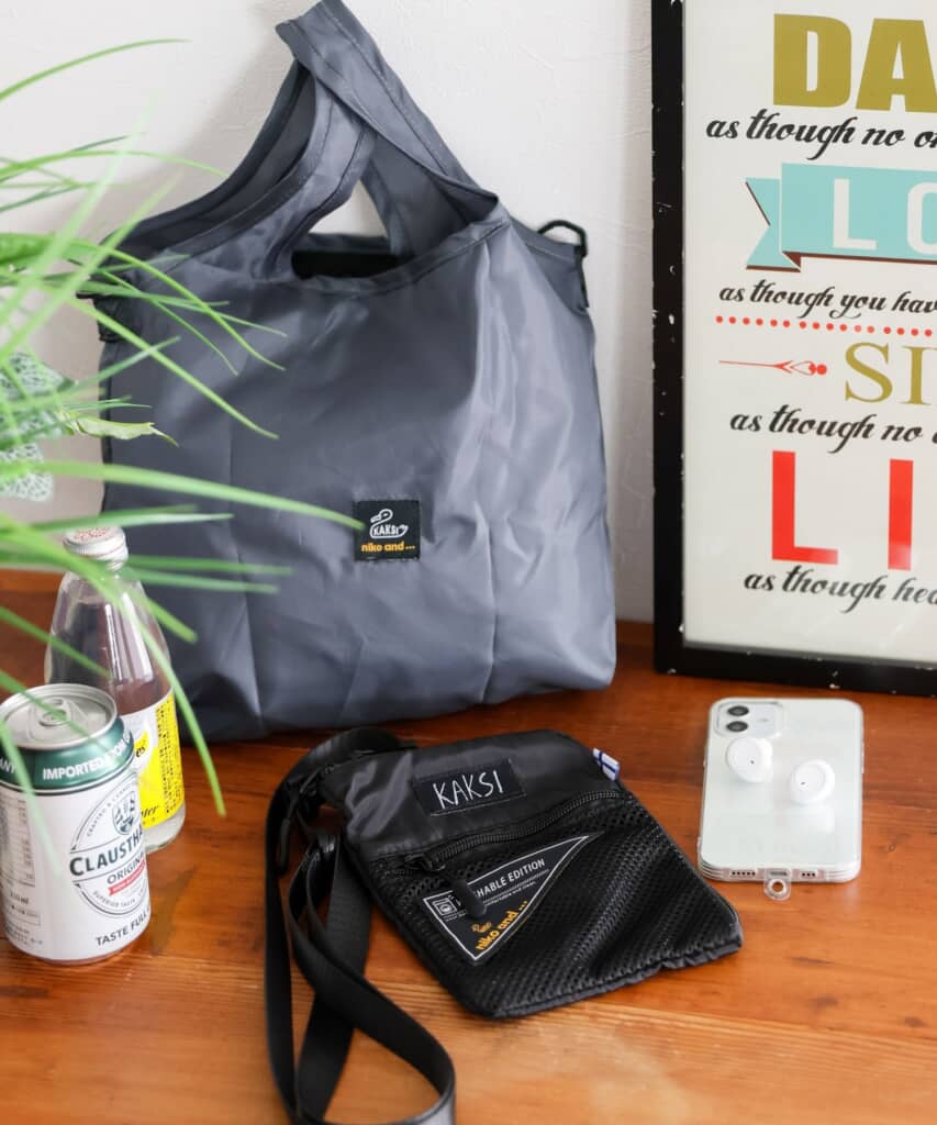 niko and…(ニコアンド)とSNIFF(スニフ)のブランド「KAKSI(カクシ)」がコラボした、エコバッグに早変わりする、持ち歩きやすいサコッシュ「サコッシュエコバッグ」が便利だと好評です。