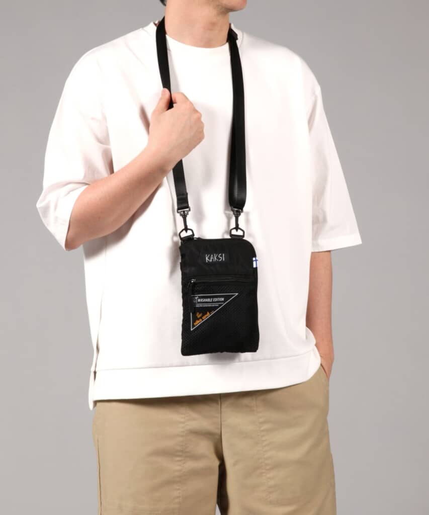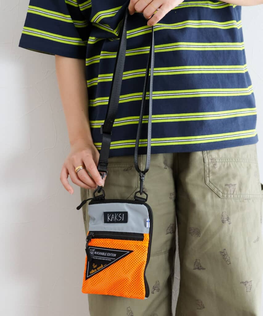 洗濯ネット使用で洗濯機洗いが可能なので、汗ばむ季節やアウトドアでも気兼ねなく使えます。カラーはオレンジ(新色)・ブラックの2色をand STで展開。サイズの目安は高さ20cm×幅14cm、ショルダー最長約132cm、素材はポリエステル。KAKSIとニコアンドのダブルロゴのタグがポイントになり、スタイリングのアクセントとしても活躍します。価格は税込2200円という高コスパで、デイリーのサブバッグから旅行・レジャー・フェスまで、幅広いシーンで頼れる相棒です。