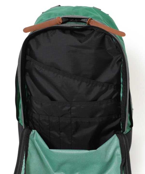 BEAMS BOY別注の「GREGORY/VINTAGE DITCH DAY」(税込み:2万4200円)は、1993~1996年にかけて展開されていたグレゴリーの“青文字タグ”時代のグリーンカラーを再現したモデル。ムラ感を抑えた風合いでリアルなエイジング感を演出し、長年使い込んだような味わい深さに仕上げているのが魅力です。モデルは前シーズンから別注している「DITCH DAY」で、外側フロントポケットのスエードや内側のパープルのパイピングといったディテールがポイント。通勤・通学はもちろん、日帰り~1泊旅行にも対応する26L容量なのも使いやすいですね。