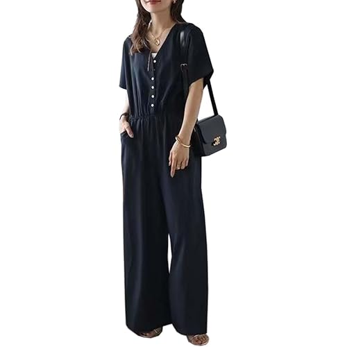 2位:[DYIOPMFGZ] CHUMO オールインワン レディース セットアップ サロペット パンツ オーバーオール 半袖 Vネック ストレート ワイド ロング丈 おしゃれ 気質 シンプル ゆったり 着痩せ カジュアル 夏