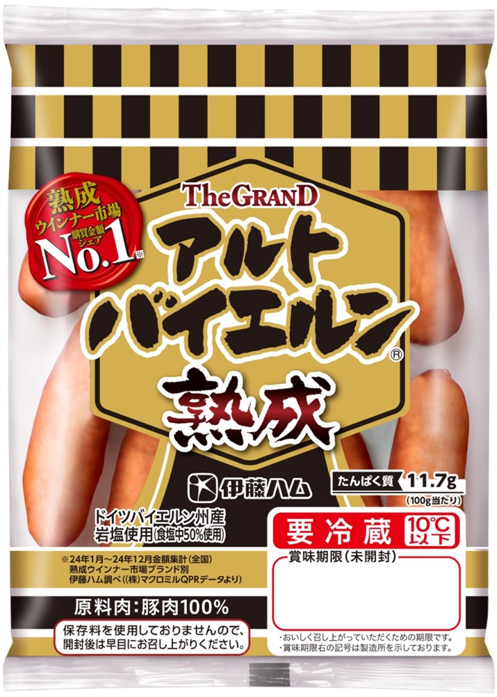 肉のうまみを存分に引き出した「アルトバイエルン」は、伊藤ハムを代表する主力商品として大ヒット。さらに2014年には、リニューアル商品として「グランドアルトバイエルン」が発売されました。同社伝統の製法でじっくりと熟成された、コクと深みのある味わいが魅力の一品です。