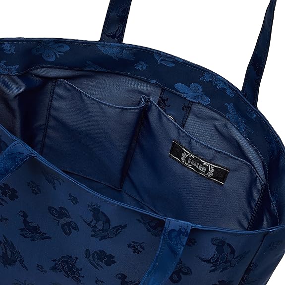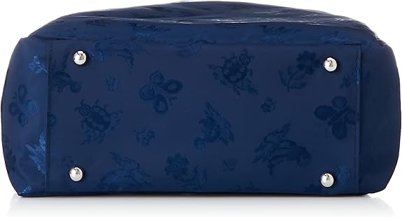 フェイラーの「ハイジ トートバッグ JHE-221341」は、ネイビー地にてんとう虫やちょうちょ、小鳥を配したデザインの縦型トートで、上品な紺色と柄、そして荷物を入れると自立する設計が好評です。