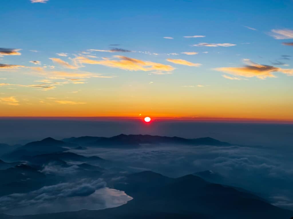 富士登山でも同アイテムを使用してみました。朝5時頃に「ステンレス真空ボトルタイプM500」に熱湯を注ぎ、家を出ます。富士山に登頂するためには、途中山小屋で一泊、翌早朝に山頂に向けて出発するというのが初心者向けとのことです。筆者もその例に漏れず、7合目にある山小屋で一泊。まだ暗いうちに山小屋を出発し、朝5時ごろに8号目と9号目の間あたりでご来光を見ることになりました。