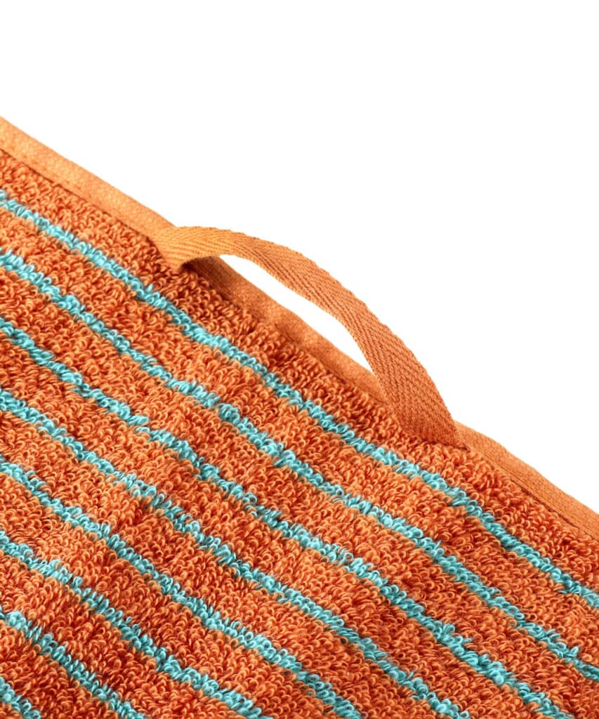 第2位は、「フェイスタオル:34×82cm」(税込み:550円)でした。綿100%素材を使用した、ふんわりとした触り心地が魅力のタオルです。シンプルなストライプ柄で性別問わず使いやすく、自宅やレジャーでも活躍。便利なハンガーループ付きなので、フックなどに掛けておけるのも便利です。手や顔を拭くのにちょうど良いサイズ感で、日常使いにぴったり。カラーはパープル・ブラック・グリーン・レッド・オレンジの5種類を展開しています。