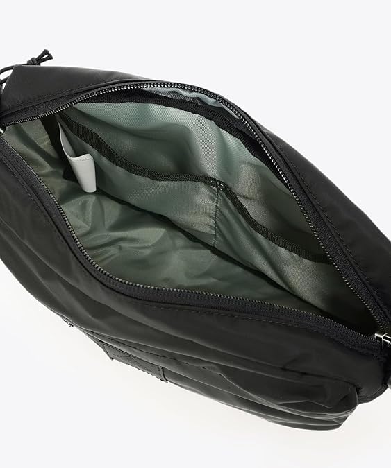 Kelty(ケルティ)「レクタングル ジップ ショルダー」は、前後に独立した2列のジップポケットを備えたショルダーバッグです。メインと呼べる大きな1室ではなく、同等サイズの収納が2室というレイアウトで、長財布やスマホ、鍵などを定位置に整理できます。前列ポケットには2分割の仕切り、背面側には面ファスナー付きスリーブを配置。開口部はダブルファスナーで大きく開きます。