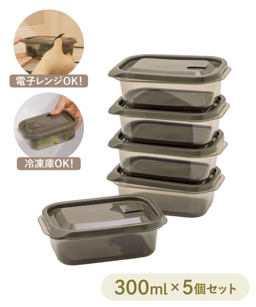 《冷凍・電子レンジ対応》耐熱保存容器5個セット:300ml/KITINTO