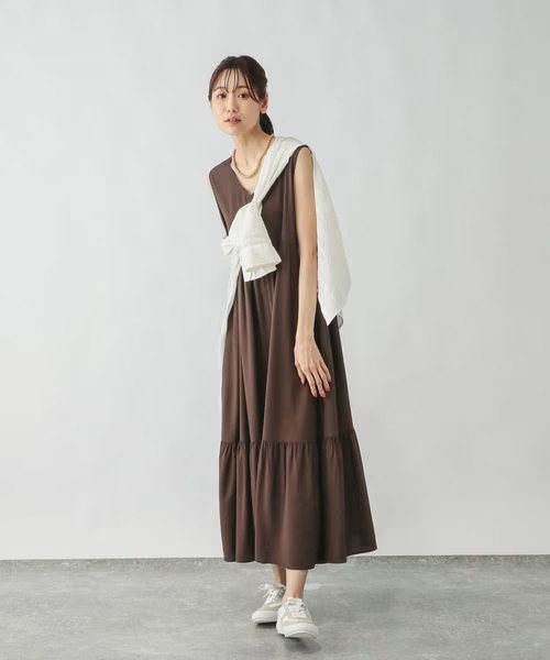 GLOBAL WORK(グローバルワーク)の「さらさらリラックスノースリーブワンピース/575224」は、まるでそよ風を纏っているかのようなさらさらとした肌ざわりが特徴の「さらさらリラックス」シリーズの一着。ティアードギャザーでふんわりと広がるロング丈に、背中側のギャザーデザインとリボンがさりげないアクセントとして加えられています。8月28日時点では19%オフの5661円で販売されています。