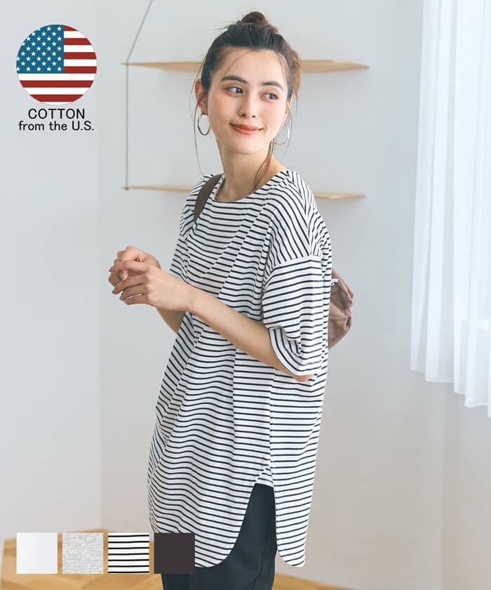 そんなcocaの「USAサイドスリットTシャツ」は、シンプルながら着回し力抜群の一枚。素材には柔らかなコットン生地を使用していて、肌触りが良く、カジュアルなシーンからリラックスタイムまで幅広く活躍。伸縮性があるため動きやすく、日常使いにぴったりです。裾部分に入ったサイドスリットが、着こなしに抜け感をプラス。幅広いスタイリングに対応でき、着こなしに変化をつけやすい一枚になっています。