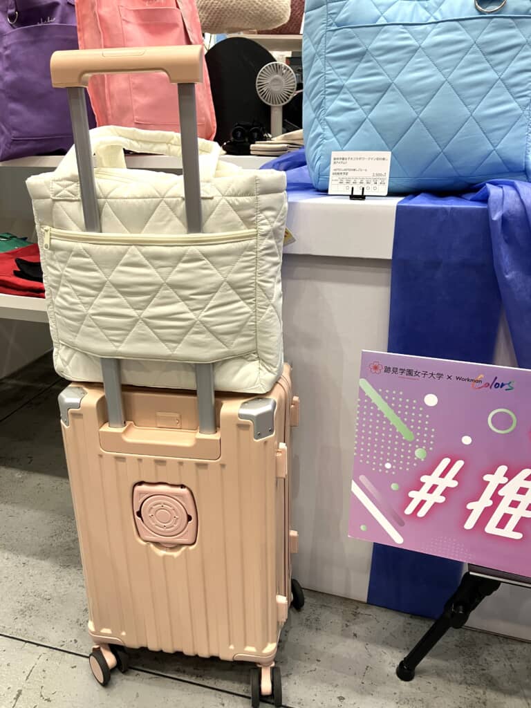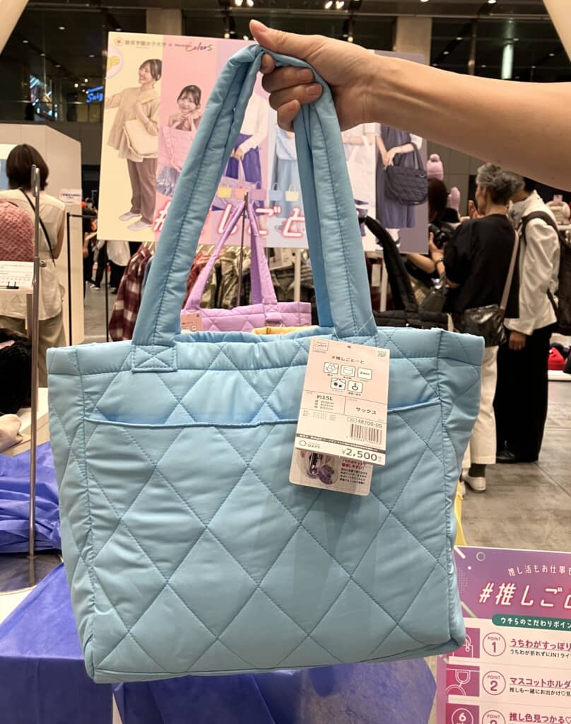 ワークマン×跡見学園女子大学の産学連携から誕生した「推しごとーと」(税込2500円)は、推し活と日常づかいの両立を目指したトートです。生地ははっ水加工のキルティングで、多少の雨や汚れにも配慮。ショルダーストラップ付きの2WAYで、手持ち・肩掛けの使い分けができます。