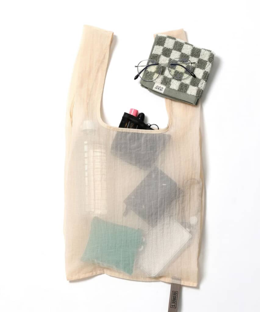 ジョージズの「ロール エコバッグ」は、軽くて持ち運びに便利なエコバッグ。内側に折り込み、カラーベルトでくるくる巻くだけで簡単にコンパクトに収納ができ、タグが結束バンドの役割を果たすため紛失の心配もありません。シアー感のあるデザインと柔らかな質感が特徴で、シワが気にならない伸縮性のある生地を使用。キャベツなど大きな野菜も余裕で入るサイズ感で、耐荷重は約3キロなので、普段のお買い物はもちろん荷物が増えた時のサブバッグやジムバッグとしても活躍します。カラーは11種類、価格は税込み1650円と手ごろなので、色違いで複数買うのもよさそうです。