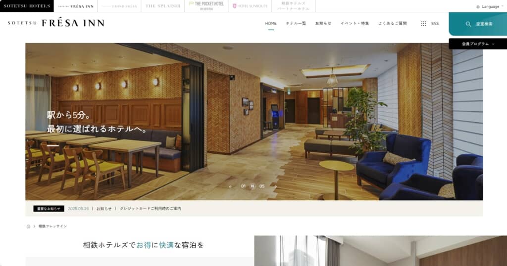 1984年に石川県金沢市片町で1号店が誕生したホテルチェーンです。47都道府県の全てに駅から近い好立地でホテルを展開しているほか、アメリカやカナダなど海外にも進出。「新都市型ホテル」をコンセプトに、高品質な空間を提供しているところも特徴です。