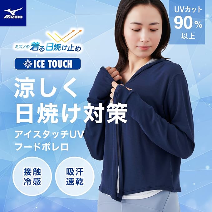 ひんやり・速乾・UVカット・抗菌防臭を備え、首元や手先までしっかりガードする多機能な夏のフードボレロ。それがミズノの「アイスタッチUVフードボレロ」です。今回はこのアイテムの人気の理由を見ていきましょう。