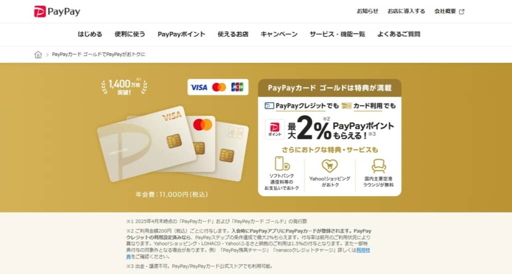 空港ラウンジサービスやゴールドデスクなどのサービスに加え、事前に旅費などをクレジット決済すれば、最高5000万円の海外・国内旅行傷害保険が適用されるところも特徴。対象のコンビニ・飲食店の支払いで最大20%のポイントが還元されるほか、年間300万円までのショッピング補償など、さまざまなサービスが受けられるところも魅力です。