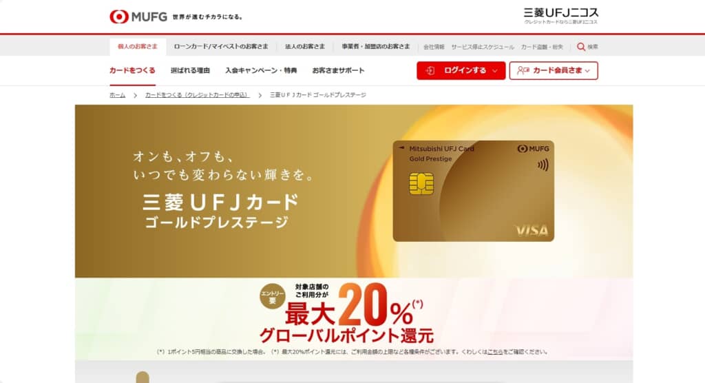 空港ラウンジサービスやゴールドデスクなどのサービスに加え、事前に旅費などをクレジット決済すれば、最高5000万円の海外・国内旅行傷害保険が適用されるところも特徴。対象のコンビニ・飲食店の支払いで最大20%のポイントが還元されるほか、年間300万円までのショッピング補償など、さまざまなサービスが受けられるところも魅力です。