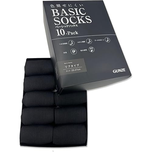 15位:[グンゼ] 靴下<10足セット> こだわり設計 ビジネスソックス 吸汗速乾 消臭 つま先かかと補強 直角ヒールでズレにくい 25-27cm FE0110 メンズ ブラック