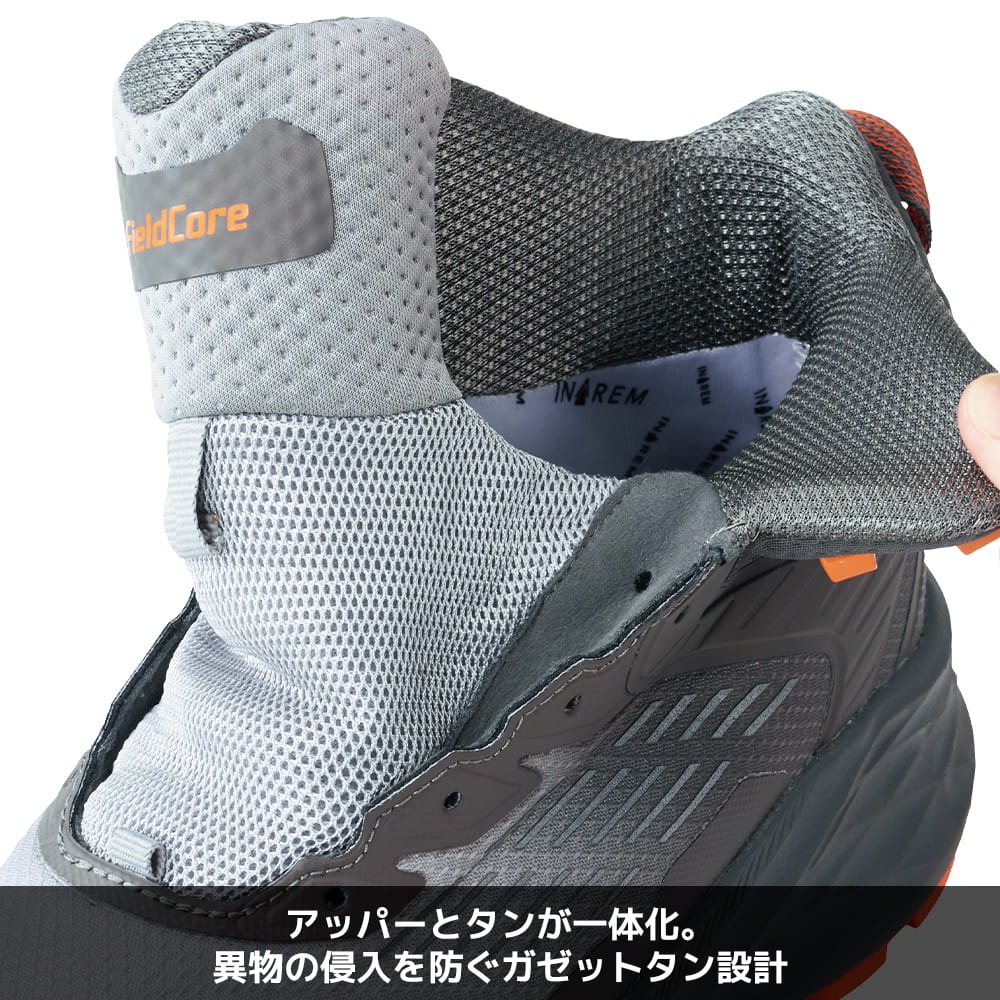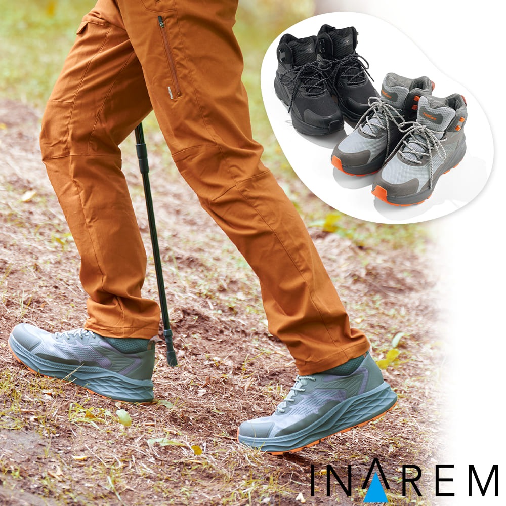 ワークマンの「トレックシューズアジム」は、繊維メーカー「セーレン」と共同開発したタフなトレッキングシューズ。透湿防水素材「INAREM(イナレム)」と高強度ライニング生地「TOUGHTERIAL INSIDE(タフテリアルインサイド)」を使用しており、アウトドア・レジャー・街歩きと幅広いシーンで活躍する一足です。接地面から6センチまでの防水性と耐久はっ水加工を施されており、急な雨や泥汚れにも対応。アッパーとタンを一体化したガゼットタン設計で異物侵入を防ぎ、グリップ力の高いソールや反射材、抗菌防臭加工など便利な機能も備えています。