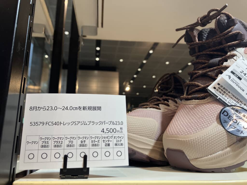 カラーはブラック・ミストグレーに加えて、展示会では新色ショコラと、ブラックパープルが登場。新色は23~24センチに対応しているので、足の小さい人にもうれしいですね。価格は税込み4500円です。