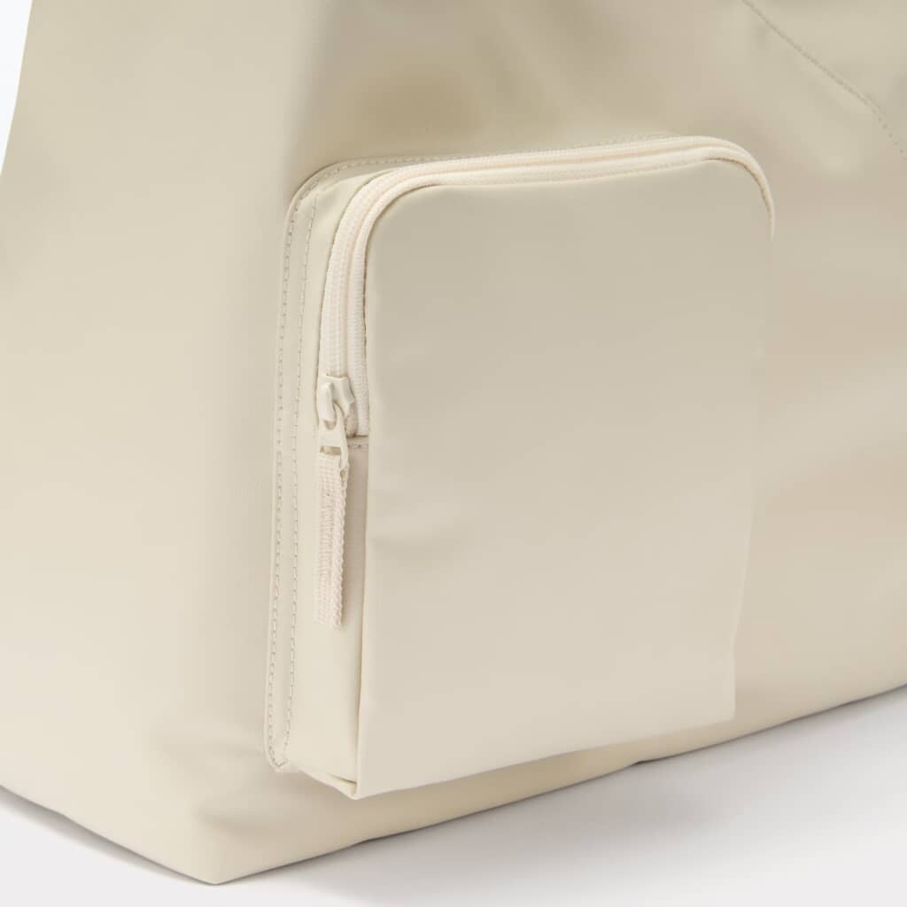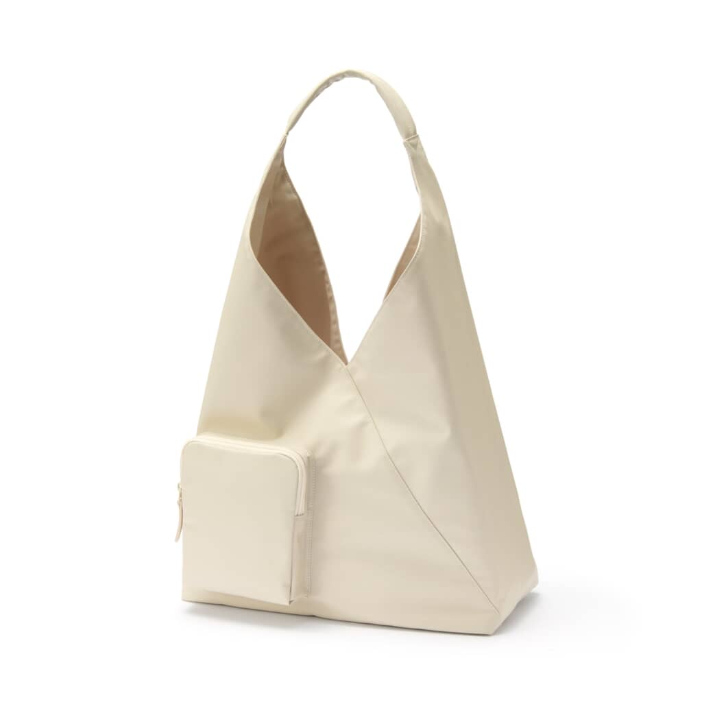 無印良品の「植物由来の原料を使った ワンショルダーバッグ」は、植物由来の原料であるとうもろこしを一部使用して作られたワンショルダーバッグ。商品サイズは縦28.5センチ×横36.5センチ×マチ17センチで、日常使いにちょうど良い大きさです。容量最大19リットル、約20キロまでの荷物を収納できるため、日常のさまざまなシーンに対応。本体重量はわずか300グラムと軽量なのも魅力です。バッグの表面に立体的なポケットが付いており、取り出し頻度が高い小物を収納するのに便利。カラーはオフ白で、定価税込み4990円のところ、2025年9月5日時点では1000円オフの税込み3990円で販売されています。
