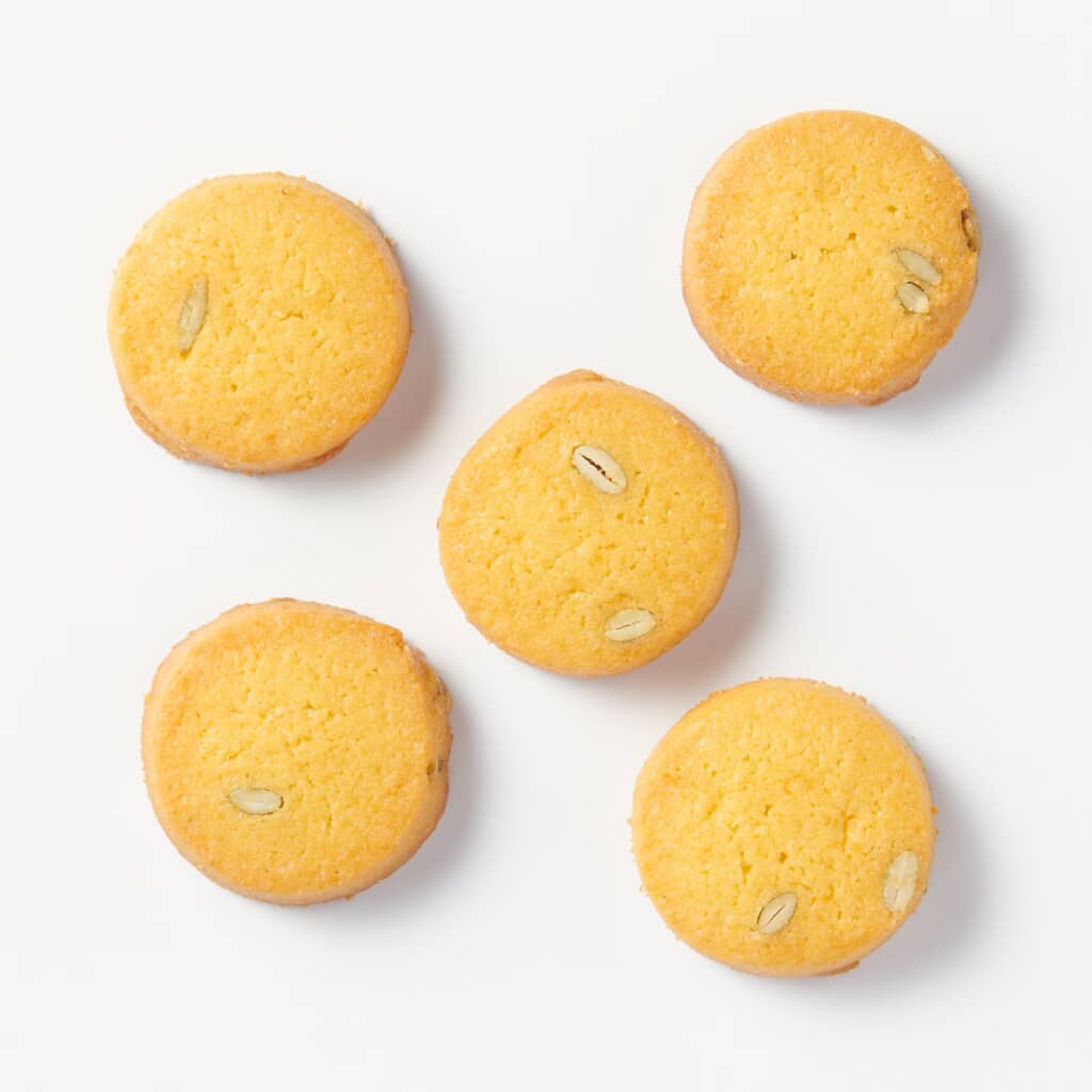 「かぼちゃのクッキー」は、かぼちゃペーストと種を生地に練り込み、アーモンドパウダーでコクを加えて焼き上げたクッキーです。サクッとした食感と、ほのかなかぼちゃの風味が特長。シンプルな材料でつくられているため、素朴な甘さが引き立ちます。