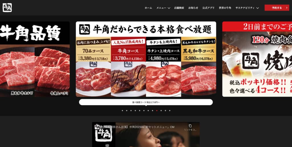 単品メニューやランチ定食のほかにも、食べ放題やランチ食べ放題など多彩なメニューを提供しており、特に食べ放題メニューは牛角ならではのもの。定番の「牛角コース」や「黒毛和牛コース」など、リーズナブルながら種類が豊富で、好みや予算によって選ぶことができるのもポイントといえそうです。