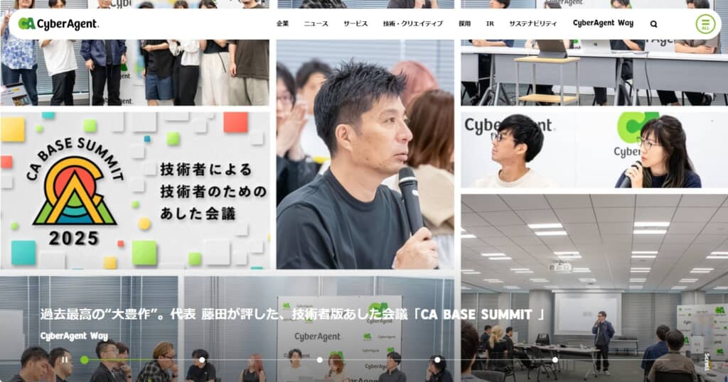 東京都渋谷区に本社を置く、インターネット関連事業を幅広く手がける企業です。多彩なコンテンツを提供する動画サービス「ABEMA(旧AbemaTV)」、国内最大級のブログサービス「アメーバブログ」、「ウマ娘 プリティーダービー」などのゲームをはじめ、さまざまなサービスを提供。インターネットという成長産業に軸足を置きつつ、連動する分野には次々と参入していく意欲的な企業で、「21世紀を代表する会社を創る」をビジョンに掲げています。