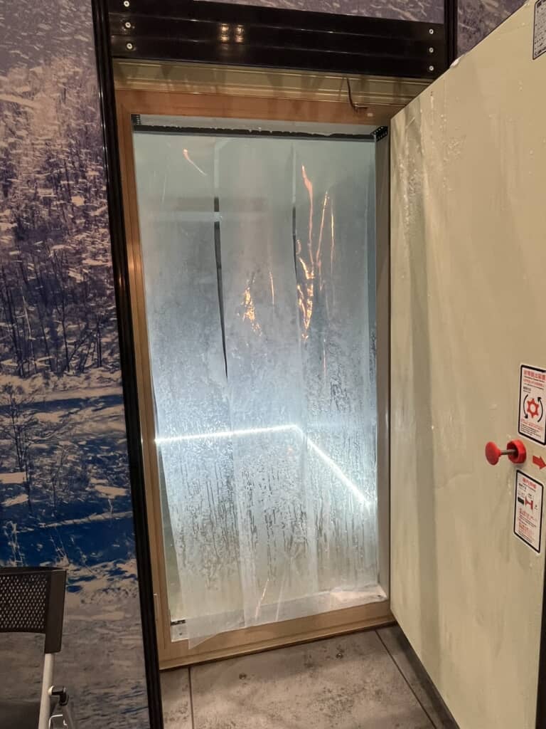 会場内に設置された「極寒」コーナーでは、大型冷凍庫を使い、マイナス25度の環境を体験することができます。