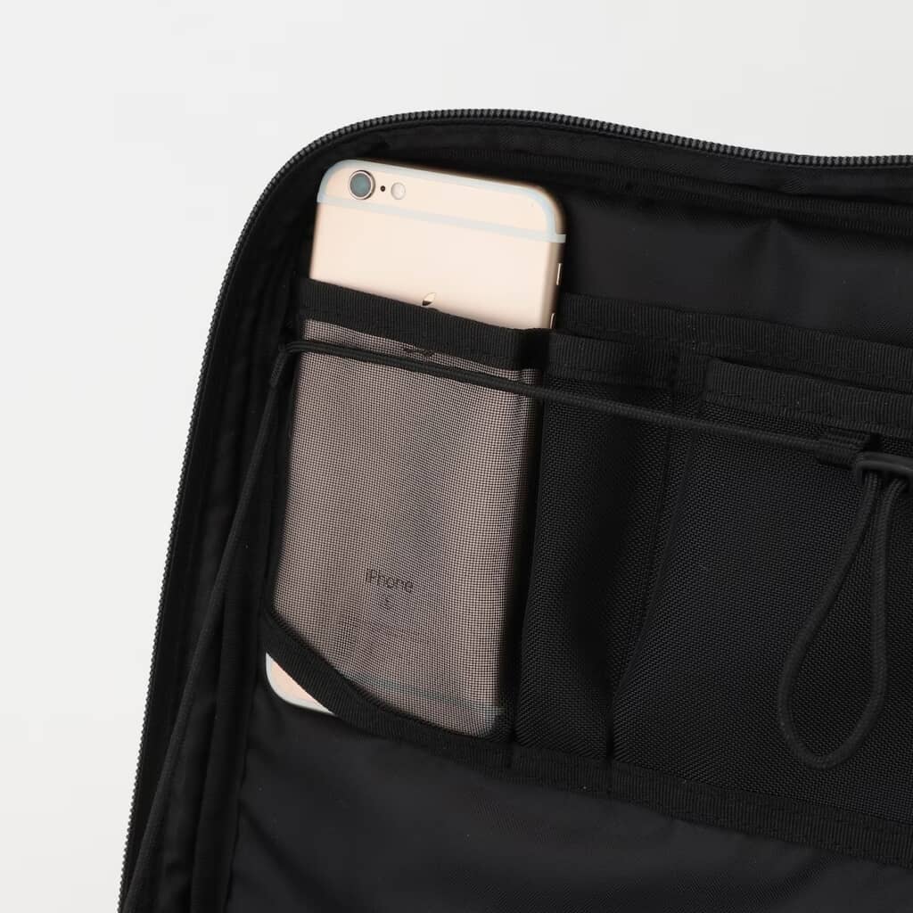 無印良品の「入れたまま使えるパソコンケース(A4サイズ用)」(2990円)は、「パソコンをケースから出さずに、そのまま使用できる」ことを目的に設計されたアイテム。PCを開いたときにしっかりとその角度を保持する構造になっています。持ち歩きと作業の手軽さを両立させたい人にピッタリ。スマートフォンが立てられるポケットなど、内部の機能も充実しています。