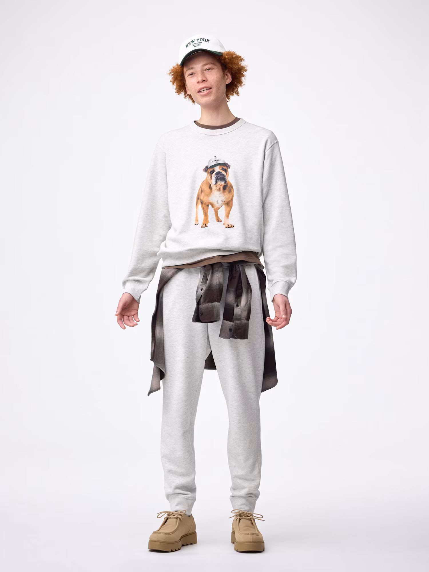 「一目惚れ」 GUの“ブルドッグのプリントがかわいいスウェット”が人気! 「ワンちゃんがいいデザイン」「着心地もバッチリ」