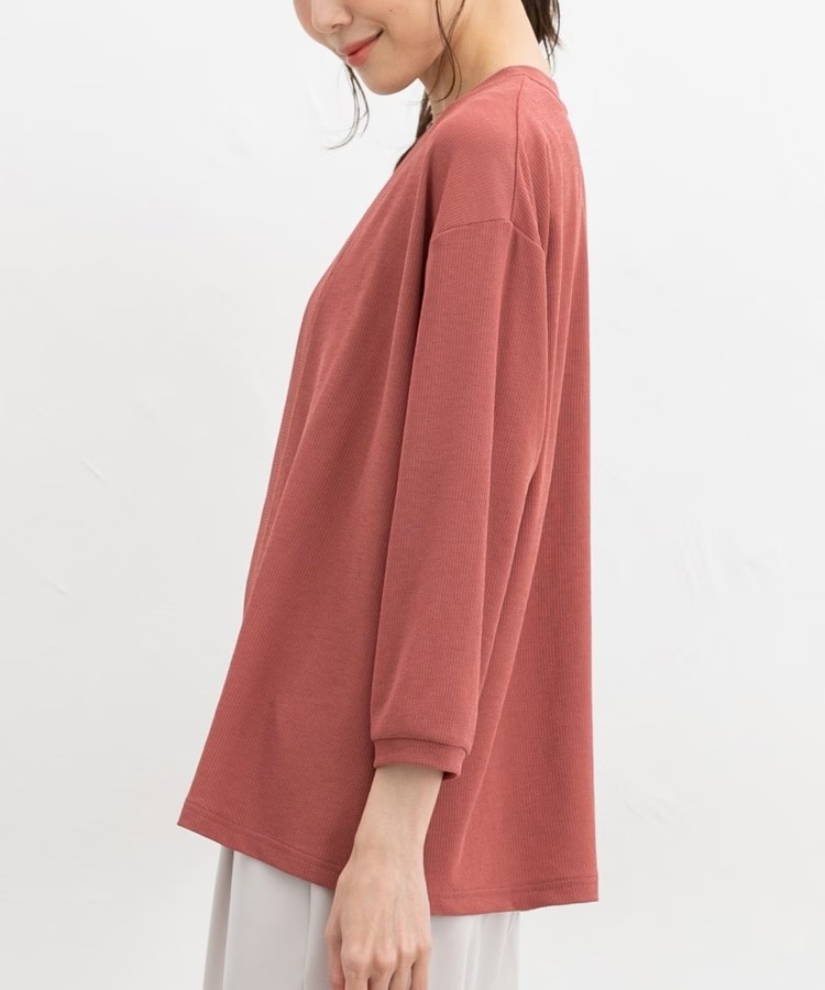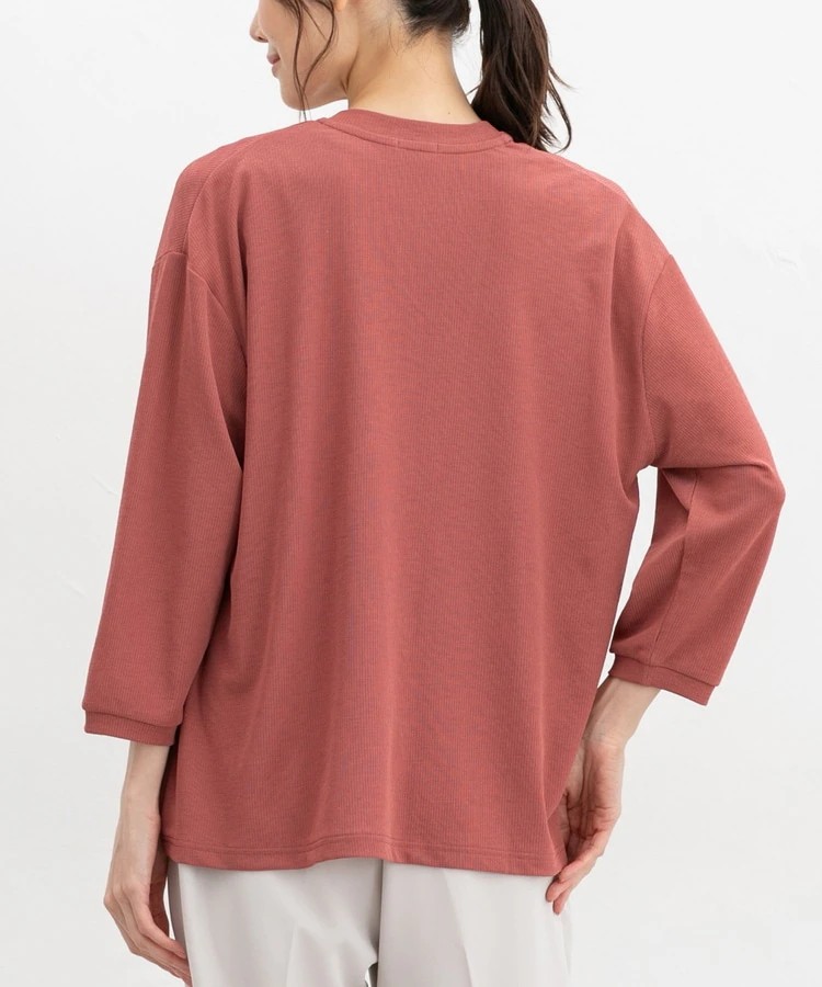 ハニーズの「8分袖トッパーカーデ」(セール中、1280円)は、夏~秋にかけてさっと羽織って重宝する一枚です。袖丈は手首より少し短い8分袖で、腕を完全に覆わず抜け感がありつつヒジあたりの露出も抑えられる仕様。さっと羽織れるボタンレスのシンプルデザインで、前を閉じずラフにさらっと羽織るスタイルが自然に決まり、気軽さがあります。
